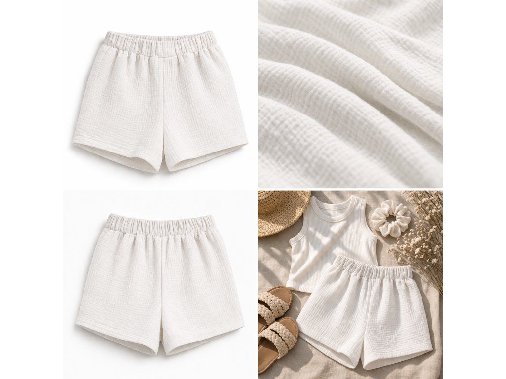 Tyto mušelínové kraťasy v jemném smetanovém odstínu jsou základem pro každé dokonalé ráno. Působí neuvěřitelně čistě a svěže, jako čerstvě povlečená postel. Je to kousek, který nebudete chtít svléknout ani dlouho po probuzení.
